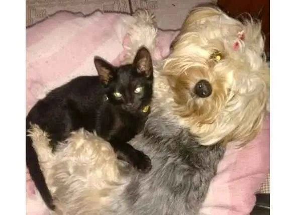 Ela tem rabo orelhas caidas tem uma tetinha bem escura devida dar mama para um gatinho ,nuca deu cria nao é castrada é muito docil ela escapou proximo da avinida afoncina rudge ramos por volta das 18:30 ,uma mulher acolheu na av lauro gomes entre palmares e sc sul e sacadura cabral .