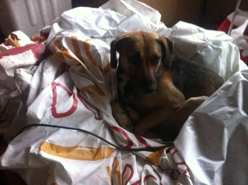 Ele escapou da coleira e se evadiu em uma chacarazinha de esquina no meio do mato.