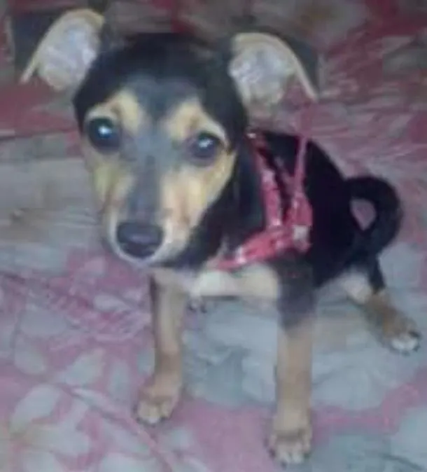 pequena,sapeca adora pular ,brincalhona ,comelona duas cores.e estava com colera vermelha no pescoço.
