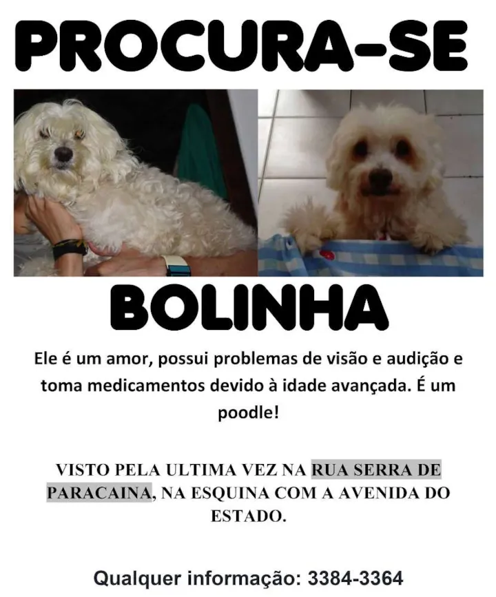 Ele é um amor, possui problemas de visão, audição e toma medicamentos devido a idade avançada. É um poodle, super bonzinho.