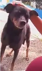 Meg 15 anos, preta com manchas marrom nas patas, tem uma falha na ponta da orelha esquerda e uma verruga na parte interna da coxa direita como se fosse uma mama. Porte médio pequeno parecida com fox paulistinha.