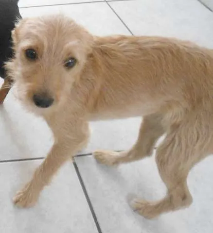 Seu nome é Mel, sua cor é caramelo, tem os olhos escuros, de porte pequeno, sem raça definida, tem apenas 06 meses e é muito dócil.