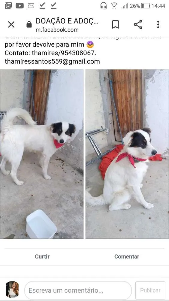 Todo branco com a rosto dos dois lados preto, visto utima vez na Avendida Ulisses Guimarães em Francisco Morato próximo mercado manancial poximo à igreja testemunha de Jeová no Barrio Jardim Santa Catarina estava na Avendida Ulisses Guimarães se alguém encontra entre em contato comigo pelo zap 990083710 meu nome é jucelia.