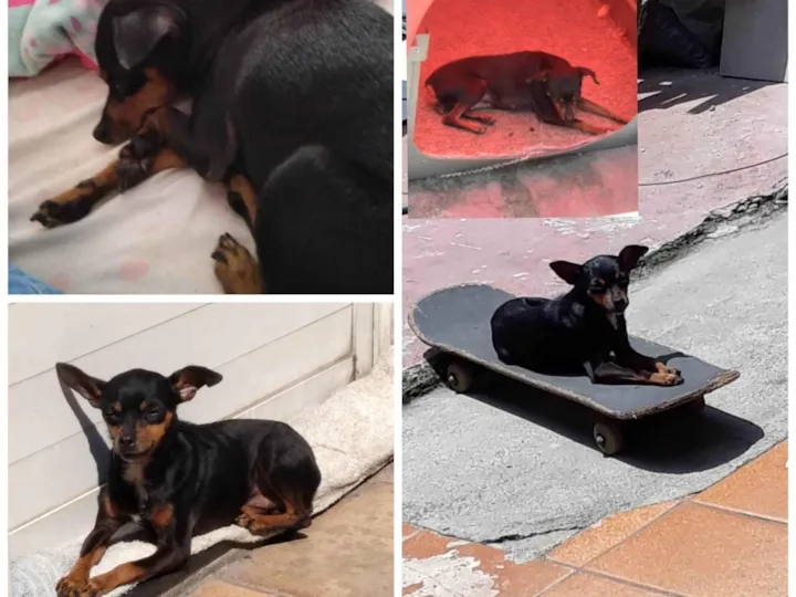 Gente boa noite, essa é a minha pinscher preta com Marrom, sumiu hoje a tarde em Sp/Zl na região Vila Antonieta nas duas pista na feira de sábado, recebi a notícia no trabalho, se chama Neguinha, quem souber aonde está por favor me manda mensagem, por favor, me ajudem?????? ela está com um peitoral rosa da coleira.