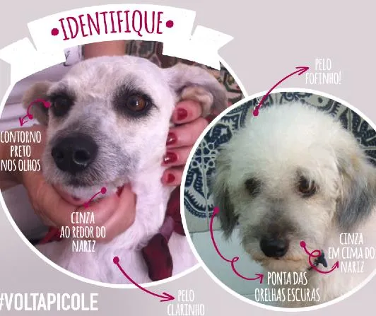 Se perdeu na Zona Oeste, em São Paulo. Mestiço de poodle, médio, branco com o pelo bem fofo. Castrado, tem a ponta da orelha escura e em cima do focinho também. Rabo curtinho! Ajudem a divulgar: www.facebook.com/cadeopicole