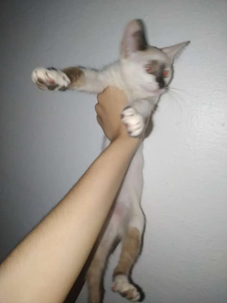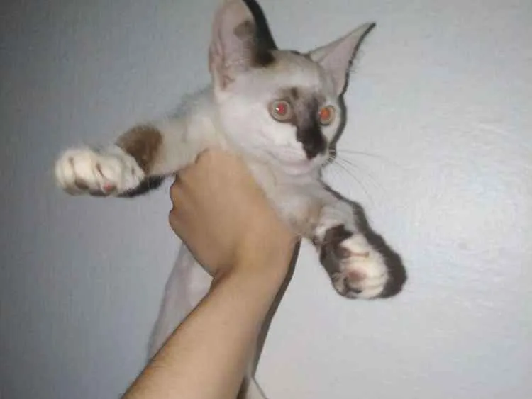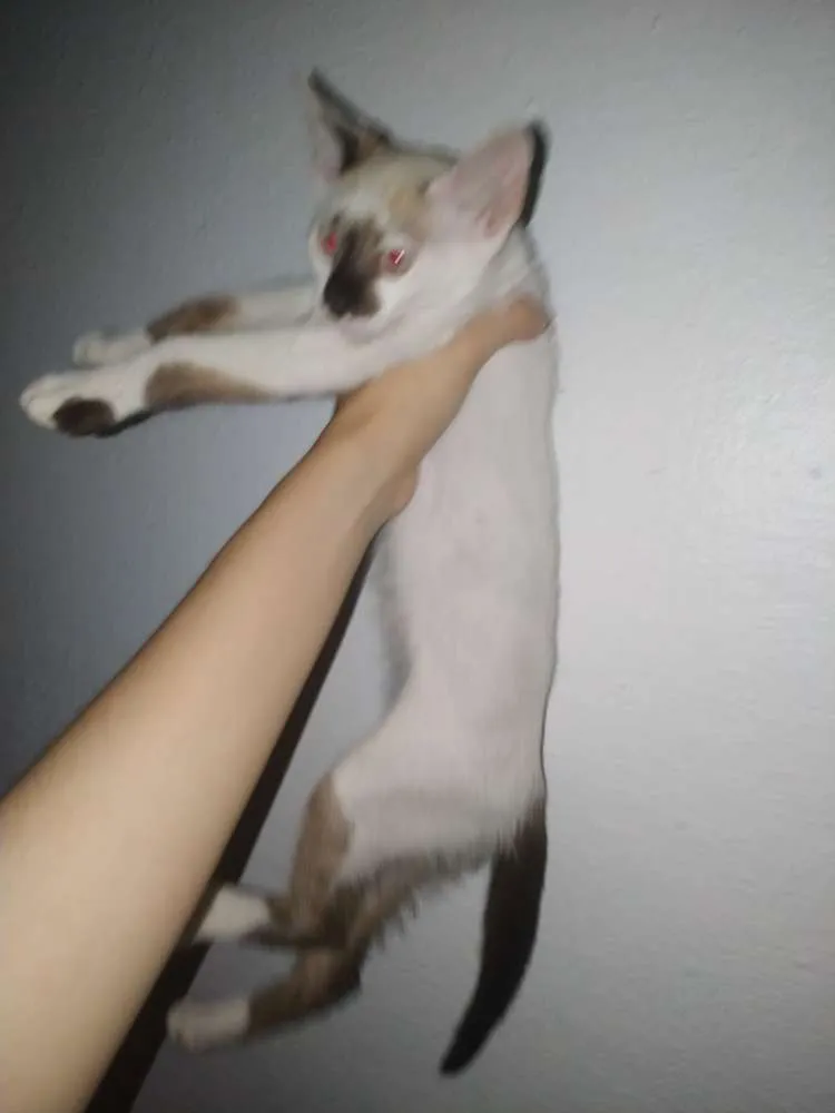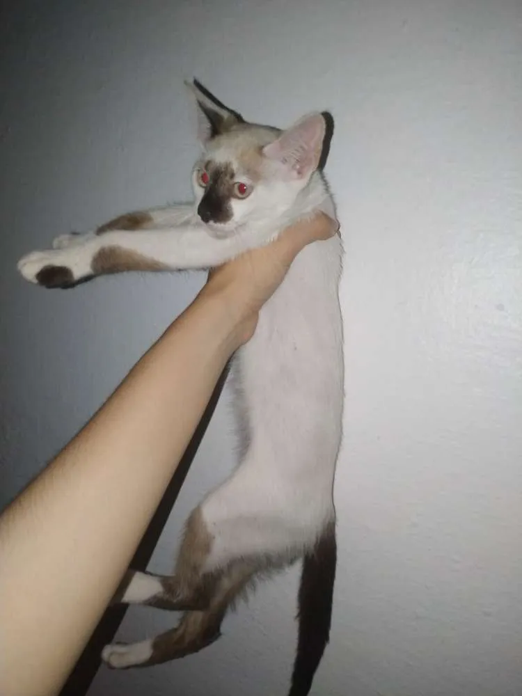 Foi resgatada de um local extremamente imundo, inabitável e era alimentada com resto de alimentos, apenas. Esta atualmente em adaptação, pois possui MUITO medo de contato humano, precisa de paciência e AMOR!