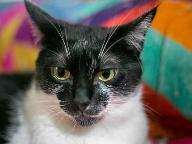 Agatha, gata resgatada com esporotricose, é tranquila e amorosa. Castrada, vacinada e saudável. Doação para apartamento telado ou casa segura. Adoção pelo site.
