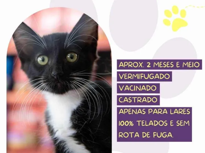 Todos os animais são doados com vacinas e vermífugo em dia e protocolo de castração (quando não estão castrados).