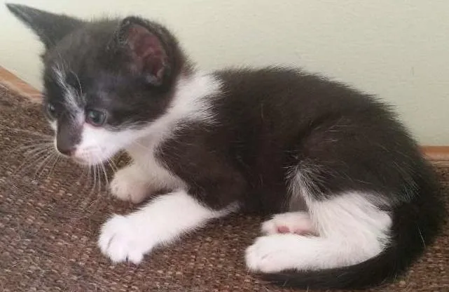 Olhos azuis, se dá muito bem com cães e outros gatos (além da mãe e dos irmãos). Come ração sólida, usa a caixa de areia e se limpa sozinho. Está na ZL de SP