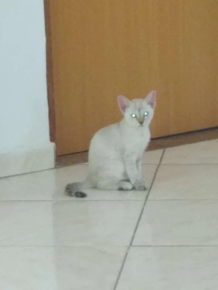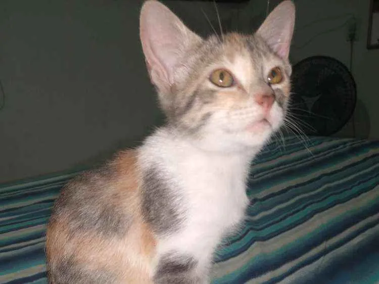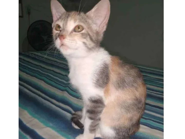 Mãe com pouco mais de um ano que duas filhotes com menos de dois meses , já desmamaram , comem ração e já usam caixa de areia.