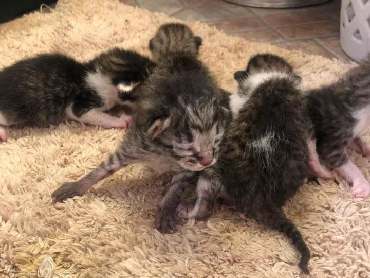 A Bela apareceu no meu quintal e deu cria dentro da casinha do meu cachorro, é a segunda cria dela comigo… ela furou a tela de proteção ??… agora não posso ficar com esses filhotes por força maior. São 5 gatinhos que nasceram dia 01/02/2024. Adote um gatinho ??