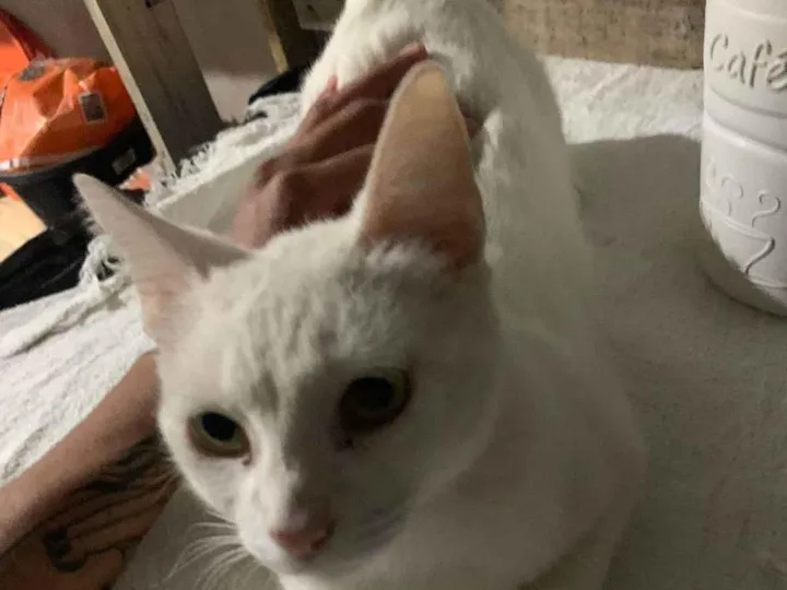 Conheça a nossa gatinha branquinha, de porte médio e 2 anos de idade. O vizinho largou ela prenha na rua e no momento estamos cuidado dela e do filhote até ele