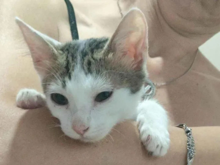 Adoção de Branquinha, gata Angorá fêmea de 2 a 6 meses. Dócil, calma e brincalhona, ideal para família com crianças ou idosos em São Paulo.