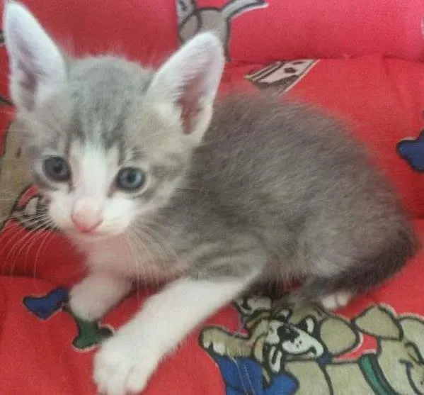 Olhos azuis, se dá muito bem com cães e outros gatos (além da mãe e dos irmãos). Come ração sólida, usa a caixa de areia e se limpa sozinho. Está na ZL de SP