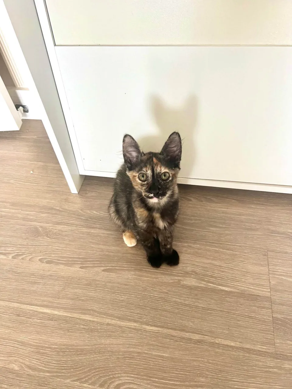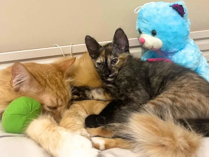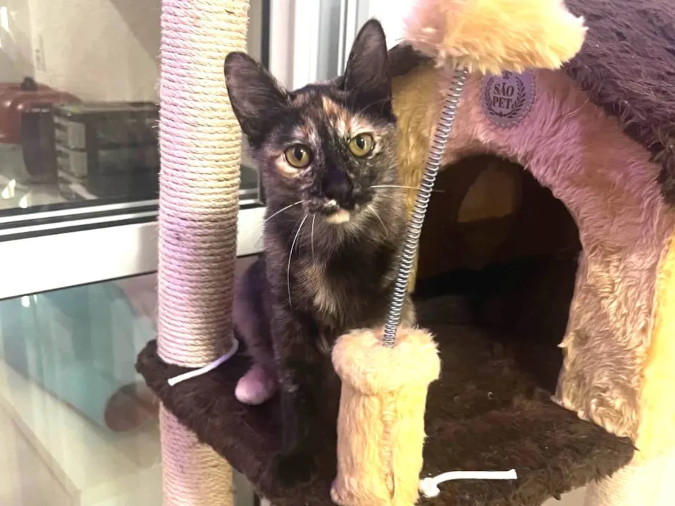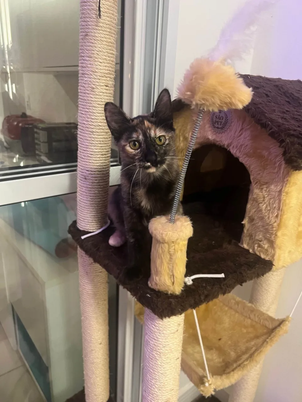 Tenho pelagem escaminha, e sou muito brincalhona e amorosa, além de muito fofinha.