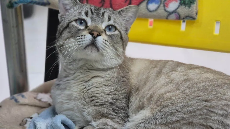 Adote Emilio, um gato dócil e brincalhão de 2 anos. Ideal para apartamento telado ou casa segura. Preencha o formulário de adoção e mude sua vida!
