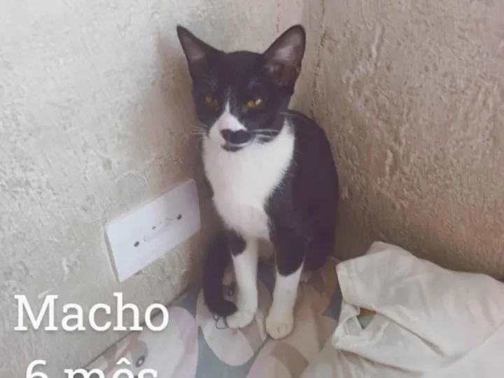 Conheça esse lindo gatinho SRD-ViraLata de pelagem branca e preta, com idade entre 2 e 6 meses e porte pequeno, que está à procura de um lar amoroso. Ele já foi