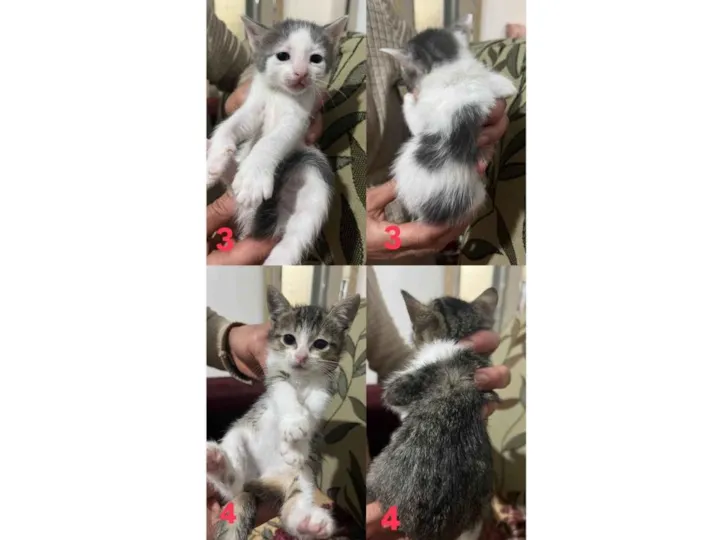 Foram abandonados na minha rua, todos já comem ração e fazem as necessidades na areia.