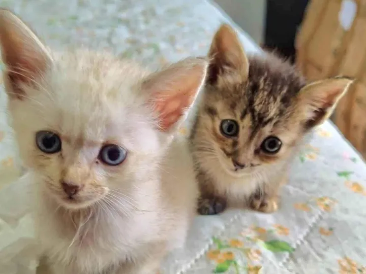 Conheça Leo e Lua, nossos pequenos felinos SRD-ViraLata de pelagem branca e menos de 2 meses de idade. Eles são irmãos e estão à procura de um lar amoroso para chamarem de seu.