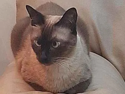 Lola é de raça siamesa, eu a adotei filhotinha e sempre viveu comigo em apto com redes de proteçao nas janelas e sempre foi muito saudável. Ela é castrada e vacinada e come bem pouco.