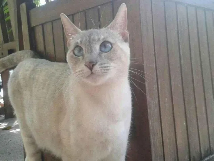 Luna... uma linda gata branca mesclada de cinza e amarelo clarinho... uma "escaminha -sialata da cor das nuvens"... ela é vesguinha sim, e tem um miado rouco e conversa bastante...