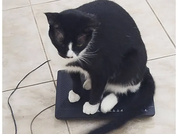 Gato macho, castrado. Domesticado e dócil, gosta de ficar na dele e não pede muito carinho. Gosta de dormir em cima do modem da internet
