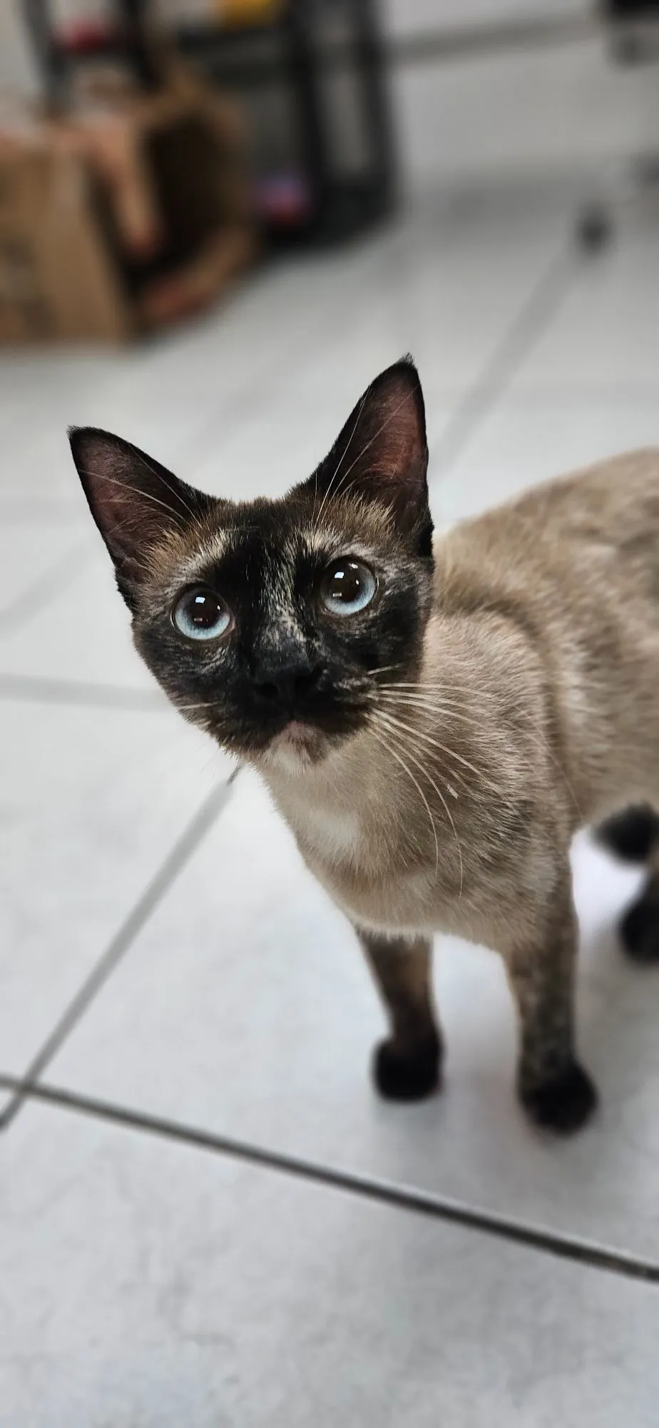 Gatinha muito meiga. Gosta de ficar perto e dormir. Precisa de um lar e uma familia