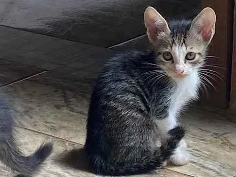 Gatinho à procura de um lar amoroso! Este pequeno gato, de pelagem rajada e com apenas 2 e meio meses, é a companhia ideal para quem busca amor e alegria. Com um temperamento dócil e brincalhão, ele adora explorar e se divertir!