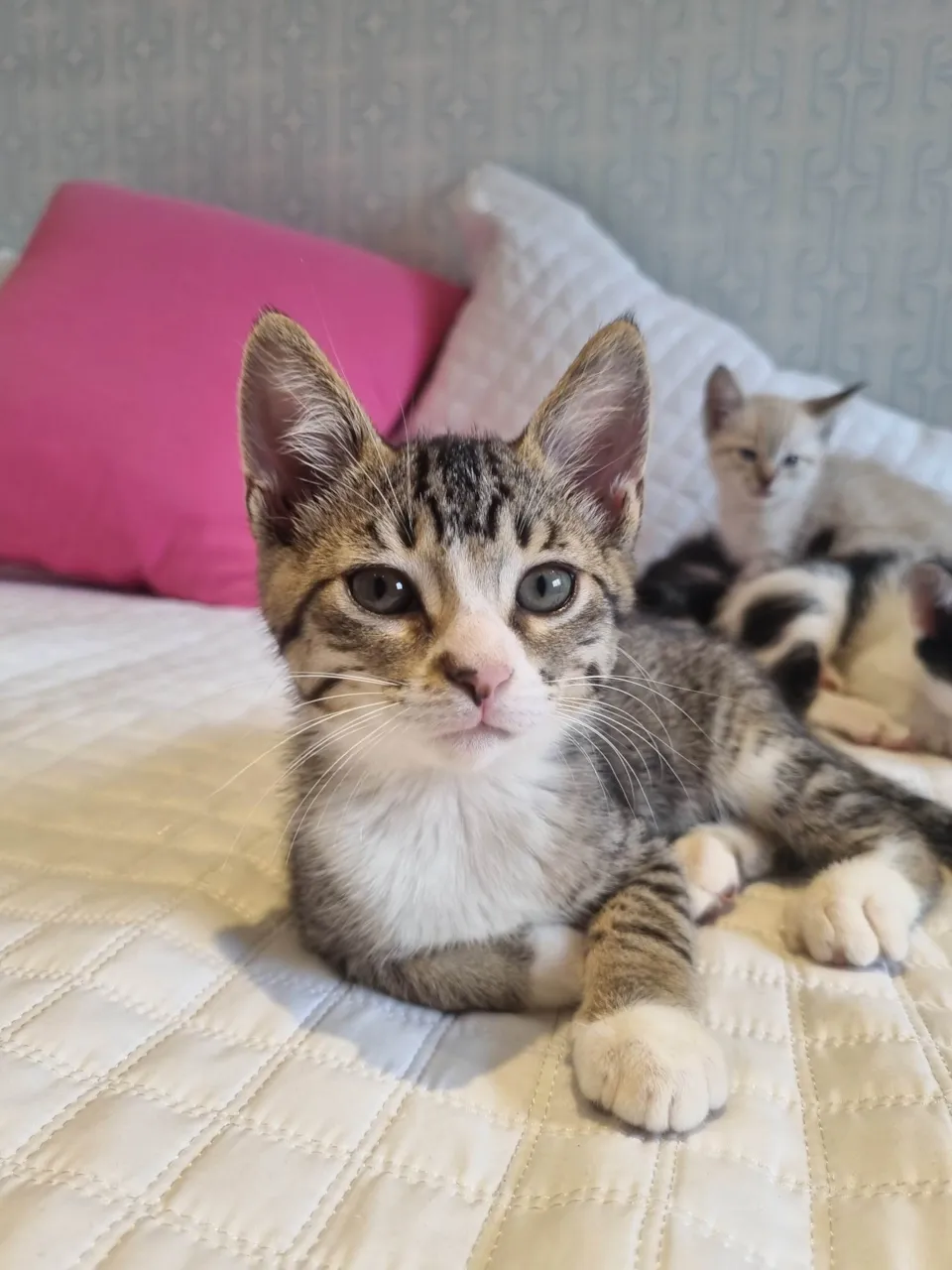 Olá, pessoal! Eu sou o Mimi, um gatinho tigrado curioso e cheio de energia. Fui o maior dos meus irmãos e sempre gostei de liderar a galera nas brincadeiras, explorando cada cantinho e inventando novas aventuras. Dizem que tenho um jeitão de “chefe da turma”, mas, na verdade, sou só um explorador nato – sempre pronto para descobrir coisas novas e correr atrás de brinquedos. Adoro brincar, seja com bolinha, ratinho de pelúcia ou até mesmo um pedacinho de papel, comigo a diversão é garantida. Mas, olha, também sou daqueles que adoram ser mimados: depois de um dia cheio de brincadeiras, gosto de deitar no colo e receber um bom cafuné, ronronando bem feliz. Dizem que meu jeito de pedir carinho é irresistível!Se você está procurando um companheiro cheio de energia achou, me adota? Prometo que farei seus dias muito mais animados e que serei o melhor companheiro de aventuras.