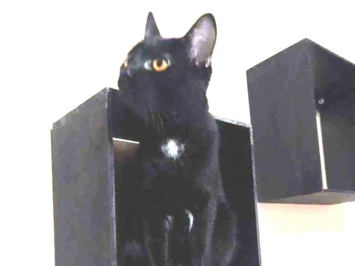 Gata de temperamento dócil, de tamanho pequeno, gosta de brincar, usa a caixa de areia e não gosta de sair pra rua.