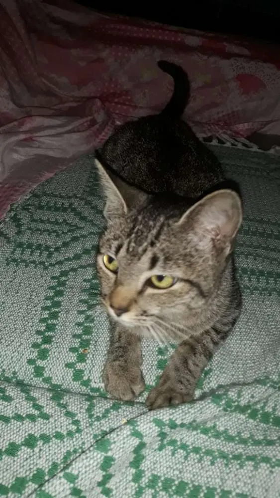 Nina apareceu na minha porta com rabo quebrado toda judiada,coloquei para dentro de casa evitando algo pior nas ruas o intuito era ela se recuperar e consegui doar, assim como ela peguei na rua também a Sofia faz umas duas semanas achei que iria conseguir doá-las mas na casa de ração eles só aceitam animais de 2 meses e não posso ficar com elas porque já tenho uma cachorra e dois gatos e ainda cuido de um cachorro de rua estou sem condições financeiras para ajudar a todos espero que apareça uma pessoa de bom coração para dar muito amor e carinho que eles merecem.