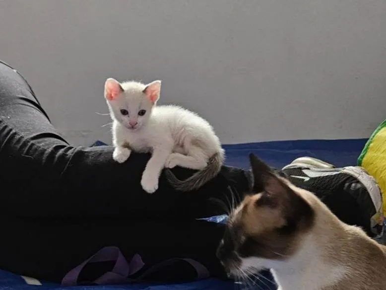 Peralta é um gato esperto, divertido e adaptável. Com dois irmãos e a mãe, já usa a caixa de areia corretamente e adora brincar e receber carinhos.