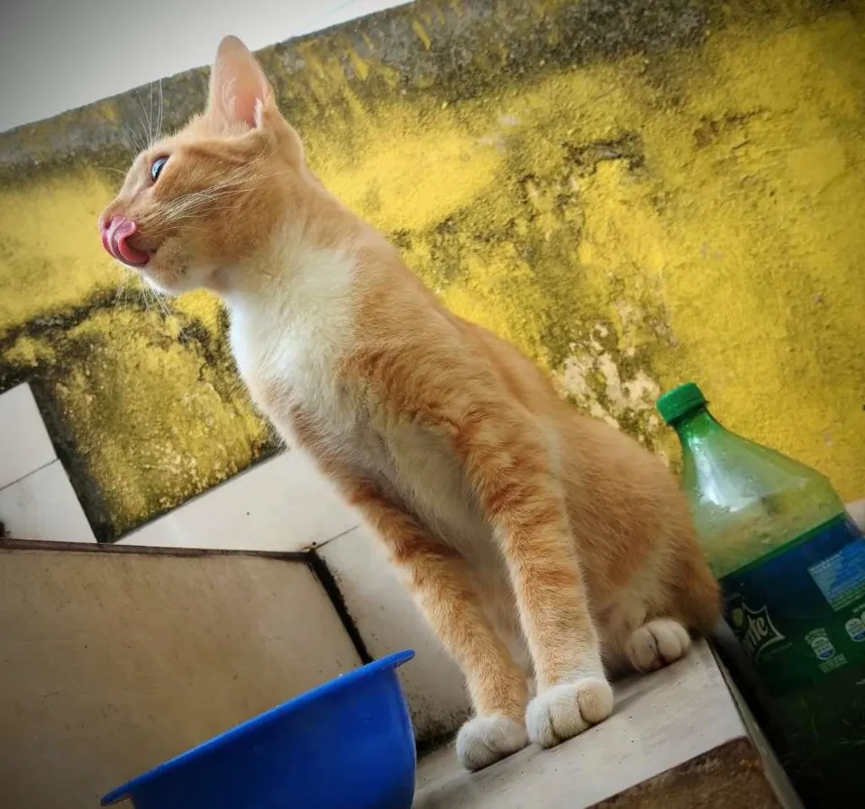 É um machinho, já castrado - provavelmente foi em alguma campanha ou mutirão de castração - mas está abandonado ou perdido (já faz muito tempo).