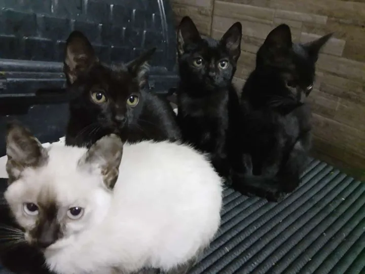 sempre tem aquela historia que algumas pessoas faz maldades com eles!! 1 gatinha e branca e os outros 4 gatinhos preto são machos.antes de qualquer critica quem alguém falar GATO PRETO NÃO DA AZAR prfv para com isso! se sua vida está ruim vc pode ter certeza que isso não vai ser pela cor do gato!!