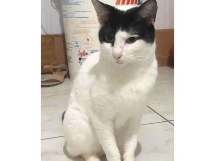 Gata calma com outros felinos, carinhosa com donos, mas estressada por superlotação. Doação é necessária para saúde dela e dos outros gatos.