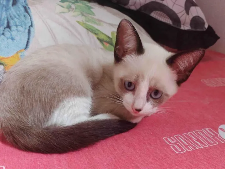 Adote a adorável gatinha Siamês, com pelagem branca e temperamento dócil. Ela busca um lar amoroso e divertido. Dê uma segunda chance à sua nova amiga!