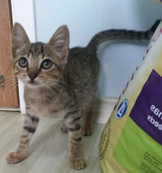 Muito amorosa, muito esperta e adora ficar no colo. Foi resgatada da rua junto com seus 3 irmãos.. estavam muito debilitados. Agora a Tigresa já está mais fortinha, despulgada e vermifugada pronta para adoção.