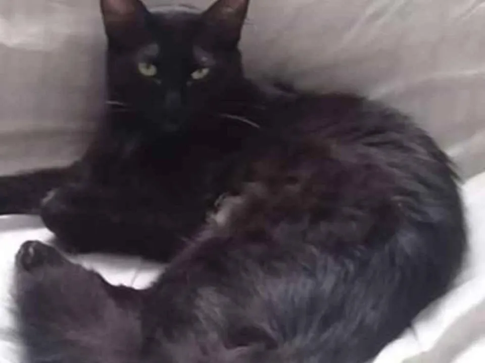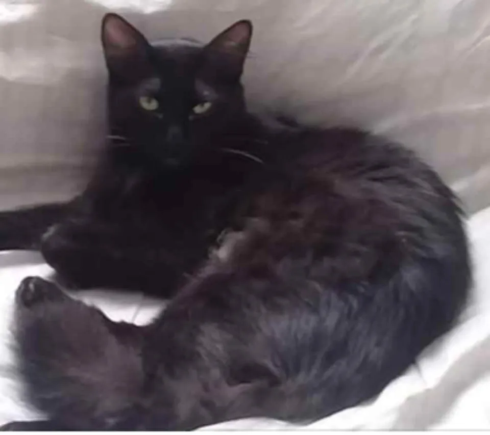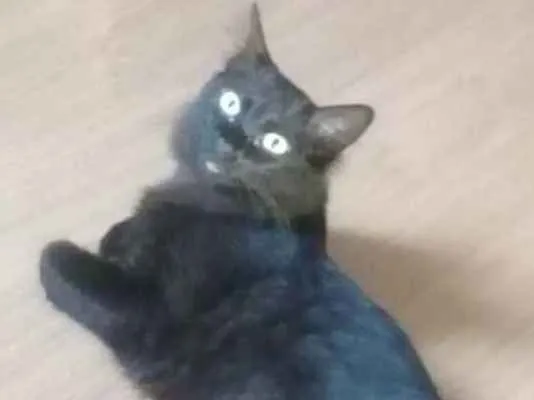 Preta, olhos amarelos, pelo fofo, castrada, vermifugada, sem pulgas, mansa, tímida. Tem que buscar na portaria do condomínio Sta Lúcia, Av River 465, Água Chata com Piratininga, Guarulhos-SP a combinar comigo dia e hora. É para tratá-la com carinho.