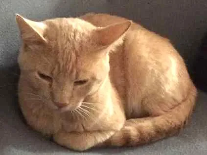Pêlo alaranjado e rabinho com listras.