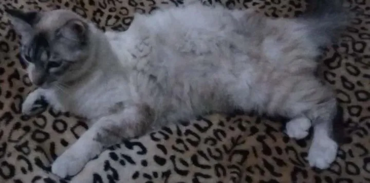 Desaparecida em 12/10. Vista última vez em casa. Gata branca peluda com manchas bege e cinza. Rabo cinza peludo. Rosto tigrado.Olhos azuis. Mansa. Manhosa. Mia qdo assustada, com fome ou qdo quer algo. Estava usando coleira amarela. Nunca saia de casa. Só ficava no quintal. Faz massagem (amassa pãozinho )na gente. Outras gatinhas e crianças sentindo muito a falta dela.