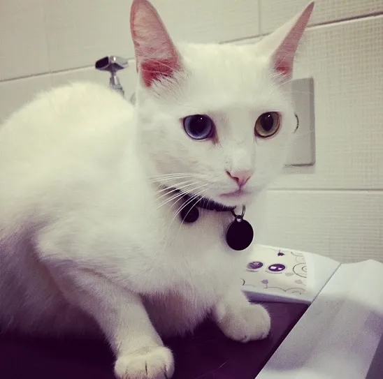 Gato Branco, porte médio. Tem um olho azul e um verde, e esta usando coleira preta de identificação com nome e o telefone. Sumiu no dia 27/06/2014 aproximadamente as 9 horas da noite, no bairro de pinheiros próximo ao largo da batata.