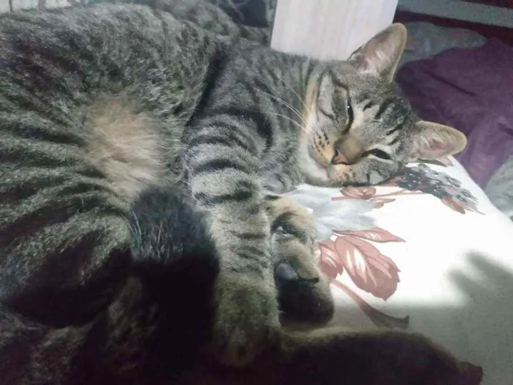 Super carinhoso, pede colo, se vira de barriga pra cima pra fazer carinho na barriga. Vive pedindo colo. Tem dois aninhos, não é magrinho e nem gordo, pesa uns 5 kilos é um gato forte e comprido.