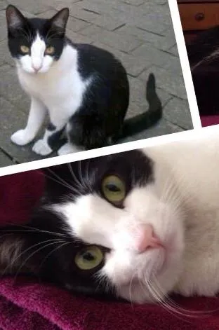 Frajola com o nariz bem rosado, sem mancha nenhuma no fucinho. Tem uma mancha tipo um bracelete na pata esquerda. É medrosa. Recompensa para informações corretas ou pra quem encontrar 500 reais.