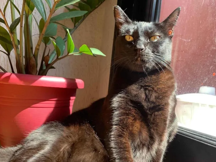 Gato preto pequeno, super dócil, olhos verdes, gordinho