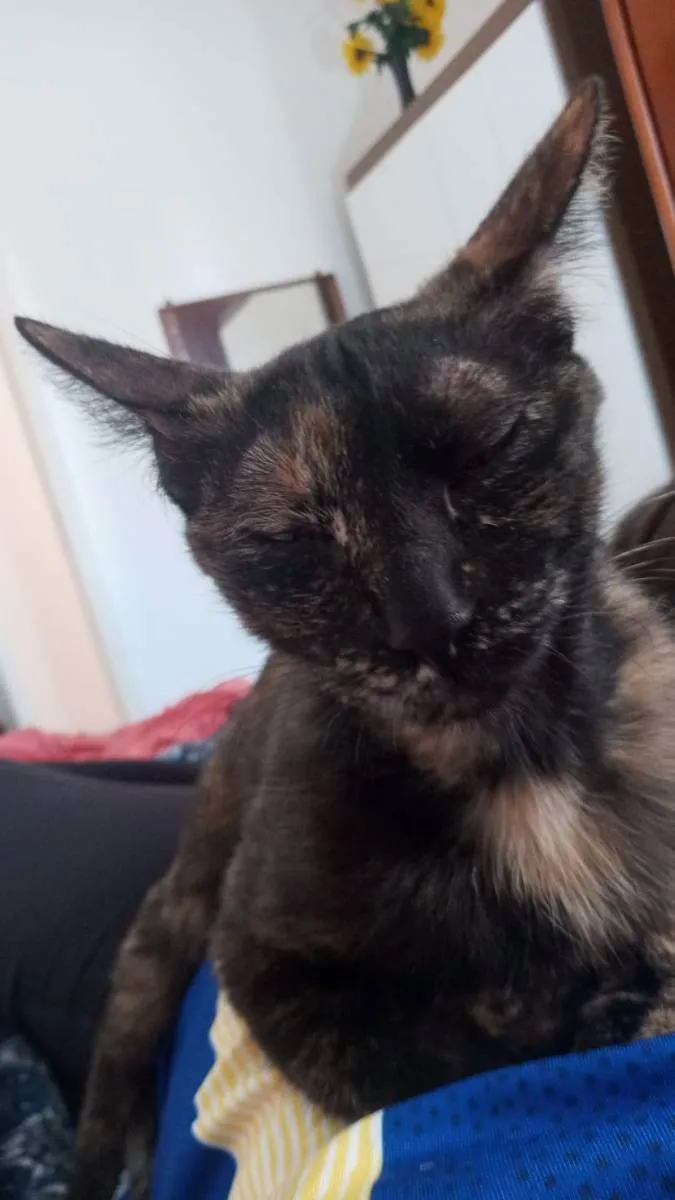 Gata malhada(escaminha) pelo um pouco ralo, atende pelo nome de Sirius. Fugiu de casa no endereço R. Indonésia, Jd das Imbuias. Perto da E.E Mademoiselle Perillier e DP 101. Criança doente . Paga-se recompensa. Contato: 11 98212-5612