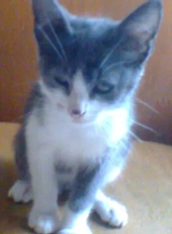 O gatinho é branco e cinza escuro tem uma mancha em um dos olhos como se fosse cegueira, ele é manso, ultima vez visto na AV Padre Anchieta altura 10440 encima da arvora da casa.