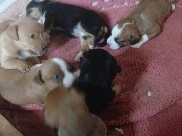 Estes adoráveis cãozinhos da raça SRD-Vira-Lata sendo 3 machos e 3 fêmeas, é uma verdadeira joia! Com menos de 2 meses de idade, eles já demonstra ser extremamente dócil e brincalhão, tornando-se o companheiro perfeito para toda a família. Com pelagem preta c/branco e marrom, eles são um charme por completo. De porte médio, é ideal para viver em uma casa com quintal, onde possa correr e gastar todas as suas energias.
