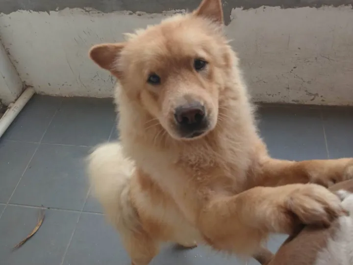 Conheça o Bolinha, um adorável cão macho da raça Chow Chow, com pelagem amarelo e uma energia contagiante! Com apenas 7 a 11 meses, ele é o companheiro perfeito para quem busca um amigo fiel e divertido.