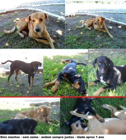 Cães, ambos macho, não estão castrados, super dóceis, andam sempre juntos, aproximadamente 1 ano, estão na Fortaleza do Itaipu em Praia Grande, estamos doando para ambos não serem jogados na rua.