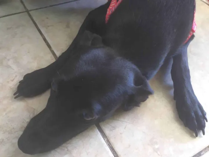 Cadela encontrada na rua em Lambari MG, pelagem lisa preta, comportada, carinhosa, carente, e super amigável